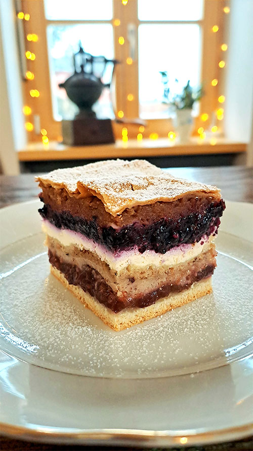 Juicy and light gibanica with pumpkin, hazelnut and apple fillings. It does't contain any milk product, so it can be enjoyed by everyone who is lactose intolerant.