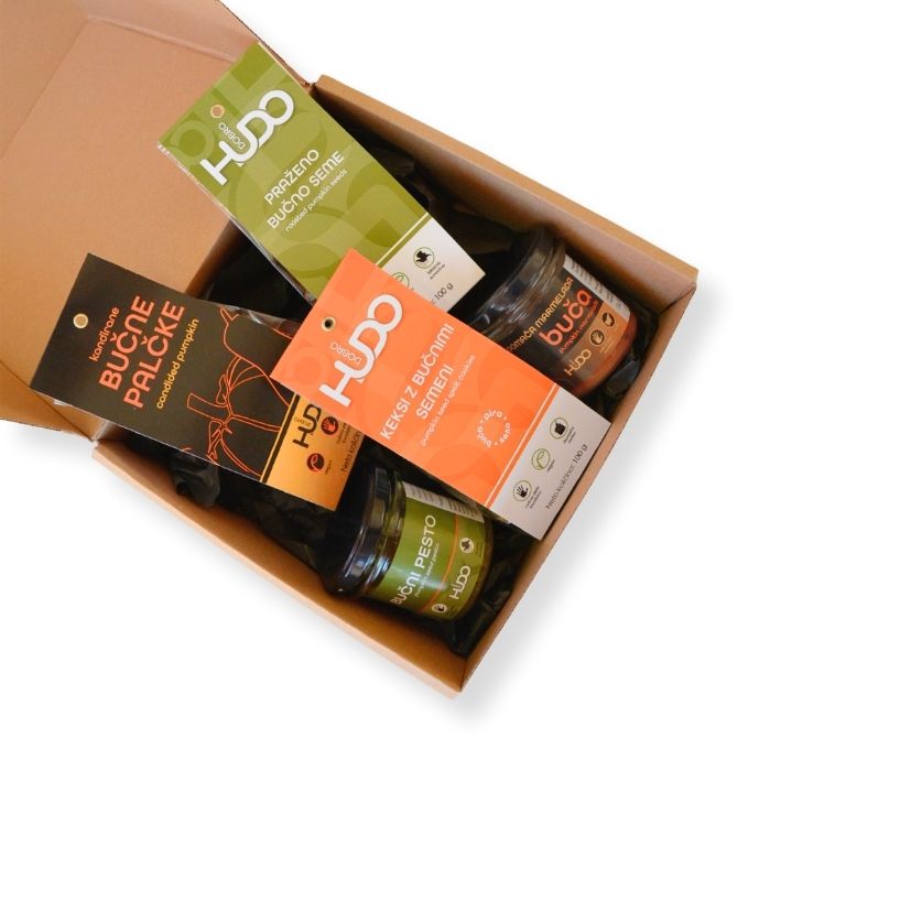 Verschenken Sie ein Paket HUDO DOBRO, sorgfältig zubereitet aus den besten Zutaten aus dem Prekmurje.