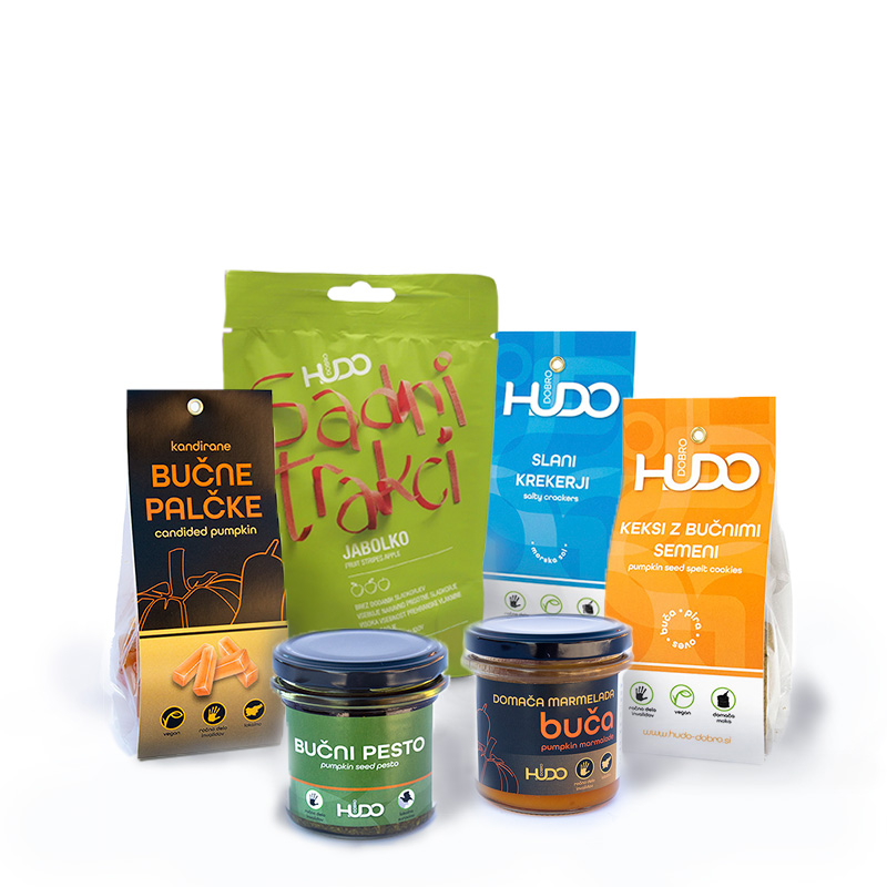 Verschenken Sie ein Paket HUDO DOBRO, sorgfältig zubereitet aus den besten Zutaten aus dem Prekmurje.